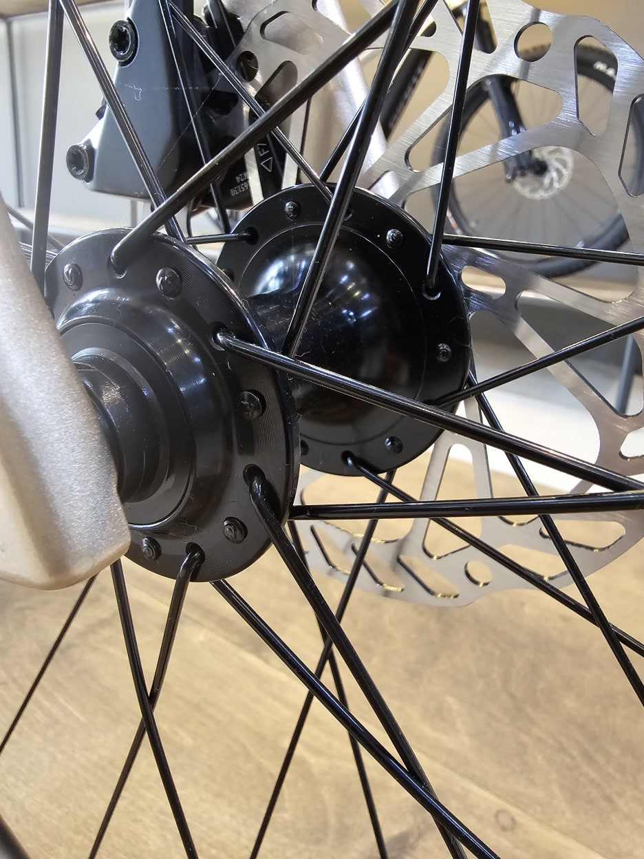 각 휠에 특수 설계된 스포크. T자형 머리, 가운데는 얇고 양끝은 두껍다, 니쁠쪽은 4각형으로 커스텀 제작된다.
