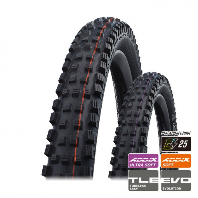 - 산악, 흙길, 그립력 중시 → 2.4~2.6인치 고려