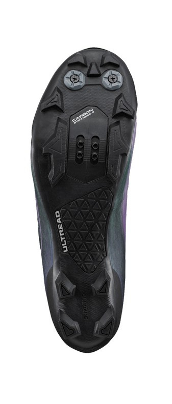 왼쪽 xc레이싱 슈즈(발볼쪽 클릿 장착을 기본으로 밑창이 디자인 되어 있다.)