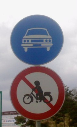 ‘자동차전용도로’ 표지판이 보이지만 무슨 의미인지 모르는 라이더도 있죠.
