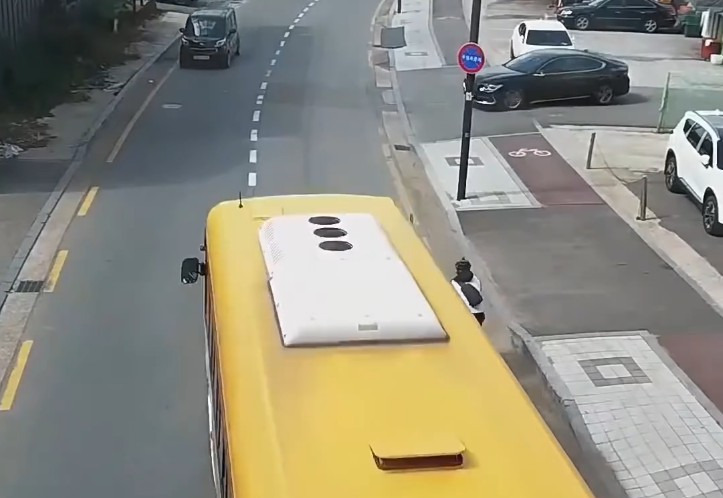 오른편 인도에는 자전거 전용도로가 있었지만, 자전거 운전자는 차도 옆 도로 갓길을 주행했고, 그 옆을 지나가던 버스가 너무 바짝 붙어 추월하면서 자전거가 흔들리며 접촉, 결국 라이더가 넘어지는 사고가 발생했습니다.